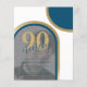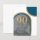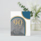 Esses convites de aniversário de 90 anos minimalistas retrô são perfeitos para uma celebração de aniversário. Os convites apresentam um tema retrô com tons de azul e dourado. Um modelo de convite de festa de aniversário moderno sobre sua foto emoldurada com arcos em tons modernos de azul e dourado. Os estilos de fonte e cor podem ser alterados clicando no link personalizar mais após a personalização.