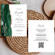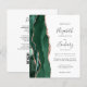A borda esquerda deste convite de casamento moderno e elegante apresenta uma borda de ágata em aquarela esmeralda verde aparada com brilho de rosa dourada falsa. O texto personalizável combina caligrafia cinza carvão, fontes copperplate e itálico em um fundo branco. O verso fornece espaço para detalhes do casamento em um fundo branco sólido, juntamente com um código QR que os convidados podem escanear para visitar seu site e responder, o que economiza o custo de impressão e envio de cartões de resposta separados. NOTA: Os envelopes não estão incluídos automaticamente com esses convites econômicos, então por favor lembre-se de escolher a opção "envelopes brancos em branco"!