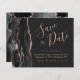 Este elegante orçamento salva a placa de data apresenta uma borda agata preta, cortada com rosa dourado falso. O texto personalizável combina o script de manuscrito colorido de rosa, fontes copperplate e itálico em um fundo de cinza de carvão. O verso apresenta um design de agate preto e rosa dourado correspondente.