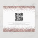 Uma alternativa de orçamento com bom custo-benefício em um tamanho menor de 4,5 x 5,6” semi-brilho com 110lbs de peso, que tem uma espessura semelhante à de um cartão postal (no entanto, não é adequado para uso como cartão postal). POR FAVOR, OBSERVE que há UM por folha. Orçamento Save The Date de casamento com Glitter em Rose Gold. Um toque de brilho com bordas de glitter falso em ambos os lados em rose gold. O Save The Date está em uma fonte moderna. O resto do texto você pode personalizar facilmente. Com seu código QR para o site do seu casamento no verso, que pode ser removido se não for necessário. Mostrado aqui em preto sobre branco, porém as cores do texto e do fundo podem ser alteradas se desejar, através da opção de personalizar ainda mais.