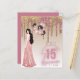 O glamour bem feminino é a essência deste convite de festa de Quinceanera, festa de 15 anos, aniversário de quinze anos de menina, com brilho rosa e dourado rosa falso. Os campos de modelo de texto em ambos os lados permitem que você inclua RSVP, Registro de Presentes e quaisquer outros detalhes do evento da festa sweet15 conforme necessário. O design apresenta brilho pingando, balões de folha e menina morena em um vestido glitter rosegold glamouroso. Também disponível com cabelo loiro e ruivo. Visualize a coleção em anexo para ver as variações.