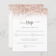Orçamento Rosa Dourado Glitter script Casamento RSVP. Uma alternativa PEQUENA de 4,5” x 5,6” com preço acessível. Disponível em PAPEL CARTÃO SEMI BRILHO 110 lb, que é a opção padrão (recomendado para convites, semelhante à espessura de um cartão postal), OU PAPEL MAIS FINO COM ACABAMENTO EM SEDA 80 lb (ideal para inclusões). Uma borda com brilho falso no topo em ambos os lados com uma escrita elegante com floreios para o cabeçalho.