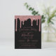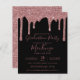 Convite de festa de formatura com respingos de glitter dourado rosa BUDGET com respingos de glitter falso e fundo preto. Nossos convites econômicos são menos caros, feitos de papel mais delicado. Ainda assim lindos! Criado por Cedar and String. Para personalizar ainda mais, clique no link "personalizar ainda mais" e use a ferramenta de design para modificar o design. Se precisar de ajuda ou de itens correspondentes, entre em contato conosco em cedarandstring@gmail.com.
