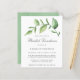 Um convite à noiva de orçamento russo, apresentando um simples design com uma aquarela verde pintada com folhas grandes, sobre um fundo branco. Abaixo estão os detalhes de seu evento em uma cinza macia e a parte traseira tem uma lavagem com aquarela verde-clara. Um elegante design botânico que é excelente para uma celebração no verão. Estes convites para almoços de noiva baratos são impressos em folhas de papel para uma opção econômica.