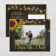 Girassóis amarelo laranja e cordões de luzes cintilantes em madeira de celeiro elegante marrom escuro, foto personalizada para salvar a data, cartão-postal de casamento econômico e acessível. +++++++++ Fácil de personalizar com seus nomes e texto! ++++++++++ Adequado para casamentos com tema floral de verão ou outono / jardim, quintal, rústico, country ou casa de fazenda. ++++++++++++++++++++++ POR FAVOR, LEIA ISSO ANTES DE COMPRAR! Este é um cartão de casamento econômico e acessível impresso em uma folha de papel (cada folha tem um cartão). ++++ Para a melhor relação preço-qualidade, nosso conselho é escolher o tipo de papel Semi-Gloss (é grosso o suficiente para ser usado para papelaria) ++++ Se você precisar de envelopes, escolha a OPÇÃO DE ENVELOPE. +++ Verifique novamente todas as informações e ortografia do seu texto porque você receberá exatamente o que vê - ninguém mais verificará nada antes da impressão. ++++ Este cartão é projetado para o tamanho 4,5 "x 5,6". No caso de você escolher outro tamanho do cartão e o