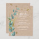 Convite de chá de noiva rústico econômico com eucalipto Kraft e dourado.