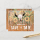 Os girassóis do casamento rústico do orçamento salvam a data do anúncio. Crânio de rodeio ocidental com textura floral dos chifres. Madeira de celeiro verde-amarelo-marrom-vintage. Design do estilo de vaqueiro da fazenda. Imagem copyright Marg Seregelyi Fotografia.
