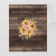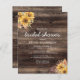 Este chá de panela rústico apresenta buquês de girassol de cor amarela em um fundo de madeira marrom, com a palavra "chá de panela" em escrita manual casual. Personalize o resto do texto com o nome da noiva-a-ser, o local do chá e outros detalhes. O verso apresenta um grande buquê de girassol sobre o mesmo fundo de madeira.