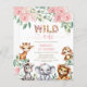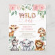 Um animal selvagem de safari de orçamento, um convite para primeiro aniversario floral.
