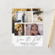 Elegante salve nosso anúncio de data. Este modelo apresenta espaço para 4 das suas fotos de casais favoritas em branco com legal caligrafia escrita à mão em cinzas escuras. Fácil de editar com seus próprios detalhes exclusivos.