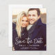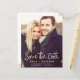 Retrato de Script Manuscrito Moderno e Elegante Vertical Foto do Orçamento Salve o Cartão de Casamento de Data. O cartão de convite para salvar data inclui uma tipografia de chic e na moda com um design simples e minimalista sobre fundo branco ao qual você pode adicionar sua fotografia personalizada de noivado.