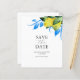 Anuncie seu noivado com este casamento do orçamento, salve o convite de data. Ele apresenta uma mistura de tipografia clássica e escrita com uma maca dos meus limões amarelos de aquarela originais com embelezamentos azuis num fundo branco nítido. Use os campos de modelo para personalizar com seu nome e data de casamento. Uma design rustica, mas elegante, para temas de casamento mediterrânicos e anúncios de noivado. Para ver a papelaria de casamento correspondente visite www.zazzle.com/dotellabelle