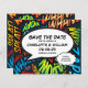 Personalize com seus nomes e detalhes para anunciar a data de seu evento especial. Pop de quadrinhos com o tema de arte moderna, divertida design, perfeita para casamentos, chás de panela, chás de fraldas, batismos, festas de noivado, comemorações de aniversário, graduações, festas de aniversário e outros eventos especiais ao longo do ano! Um design legal, moderno e divertido que coloca o golpe no seu dia. Projetado por Thisnotme©