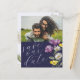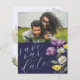 Este anúncio elegante "salve a data" é perfeito para pôr em marcha os planos de casamento. Apresenta um modelo de fotografia e uma grande tipografia em lilás pálido sobre fundo roxo escuro. Complementar sua foto é um delicado grupo de flores selvagens em branco roxo e amarelo. Personalize com seus próprios detalhes. Consulte outros itens nesta coleção exclusiva e original.