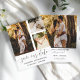 Elegante e simples guarde nosso anúncio de data. Este modelo apresenta espaço para 3 das suas fotos de casais favoritas em branco com legal caligrafia escrita à mão em cinzas escuras. Fácil de editar com seus próprios detalhes exclusivos.