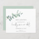 Uma alternativa de orçamento com custo-benefício em um tamanho menor de 4,5 x 5,6” semi-brilho 110lbs de peso, que tem uma espessura semelhante à de um cartão postal (no entanto, não é adequado para uso como cartão postal). POR FAVOR, OBSERVE que há UM convite por folha. Orçamento Código QR Script Eucalipto Verde Salve a Data. Adicione seu código QR ao seu site de casamento no verso, substituindo o código QR na amostra. Um design botânico minimalista para convidar seus convidados a salvar a sua data. "Kindly Save Our Date" está em um script moderno definido. O resto do texto você pode personalizar facilmente. As cores do texto e do fundo podem ser alteradas se desejar, através da opção "personalizar mais".