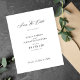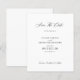 Cartão moderno minimalista de data de casamento em preto e branco com caligrafia manuscrita neutra e orçamento acessível. Adequado para casamentos formais e elegantes na primavera, verão, outono ou inverno.