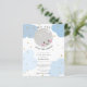 Orçamento "Estamos sobre a lua" convite para chá de fraldas com nuvens azuis bonitinhas e lua dourada/reluzente e estrelas. Projetada e ilustrada com amor por Kristine Lee - www.kristineleedesigns.com. AVISO: por favor, não escolha o tipo de papel Satin para as suas convites ao orçamento, pois é muito fino e audacioso. Obrigado.