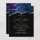 Este convite de aniversário Doce de 16 anos apresenta uma imagem de aquarela de um geode agado em tons de azul e roxo, aspergidos com estrelas cintilantes e aparados com realces falhos de ouro. As palavras "Doce Dezesseis" aparecem na falsa brilha dourada em letra decorativa moderna de escrita manual. Personalize-o com o nome da honrosa na fonte de deco de arte dourada e os detalhes da parte no tipo de serif de sans branco. A mesma imagem de agate estrelado aparece no lado inverso.