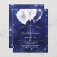Um convite moderno, na moda e glamouroso para uma doce festa de aniversário 16, 16. Um fundo azul marinho, decorado com faíscas de brilho e balões brancos. A cor azul é irregular. Personalize e adicione seu nome e detalhes da festa.
