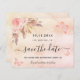 Uma garota e moda Salve o cartão de data para uma doce festa de aniversário 16, 16. Um fundo cor-de-rosa pincelado, rosa, gradiente dourado, decorado com florais cor-de-rosa pincelado, grama pampas e borboletas. Personalize e adicione uma data e nome/idade. O texto: Salvar a Data é gravado com um script de estilo com letra de tendência grande.