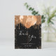 Um cartão de agradecimento de aniversário Sweet 16. Uma cor de fundo preta chic. Com gotas de brilho dourado falso, visual de tinta pingando e balões. Na frente, grande letra manuscrita e o texto: Obrigado, seu texto, título e data.