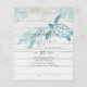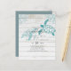 Negrito azul turquesa e azul Tartarugas Marinhas e folhas tropicais apresentam nesta moderna vida oceânica tema marinho convite de casamento ou item de salvar a data. Campos de modelo de texto em ambos os lados garantem que você possa adicionar todos os seus detalhes adicionais, incluindo rsvp, lista de presentes, detalhes da recepção, direções e mais.