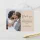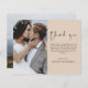 Casamento de Orçamento Obrigado Cartões que têm uma foto na frente e atrás. Os cartões de agradecimento contêm uma tipografia cursiva moderna, escrita com letra de mão, que é elegante, simples e moderna para usar após a celebração do dia do casamento.