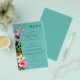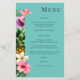 Sem envelopes, versão do folheto. **MATTE IS PAPER THIN, SEMI GLOSS paper é o mais grosso ** Economize dinheiro em convites formais com este convite em papel. Prepare seus convidados para o maravilhoso casamento com seu Menu Floral Tropical Havaiano... o Teal Blue Menu quer este design em um cartão maior, papel mais espesso do estoque de cartão? Veja a nossa coleção de cartões. https://www.zazzle.com/collections/tropical_hawaiian_floral_invitation_suite-119384619128203667