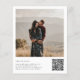 Bolsa de Foto Elegante 2 de Código QR Preto e Branco de Orçamento. A frente do cartão mostra uma foto personalizada do casal, com uma camada branca semitransparente para o texto do convite de casamento em tipografia serif clássica com um toque de caligrafia por na moda. A parte traseira do cartão mostra uma segunda foto do casal feliz, juntamente com um conveniente código QR e uma seção dedicada para detalhes do casamento. Nosso simples design preto e branco é eterno e versátil, adequado para qualquer tema e estação. Como parte da seleção orçamentária no Zazzle, esta folha não é um tamanho de convite padrão ou qualidade de papel. Se quiser que este design num cartão de convite o encontre na nossa loja ou utilize o Zazzle Make Machine para o transferir para o produto da sua escolha. Veja a coleção ligada nesta página para coordenar itens ou visite a nossa loja para mais convites para o casamento.