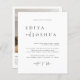 Apresentando nossos convites elegantes de casamento de fotos de código QR preto e branco. A frente do cartão apresenta o texto do convite de casamento em tipografia serif clássica com um toque de caligrafia na moda. A parte traseira do cartão mostra uma foto personalizada do casal feliz, juntamente com um conveniente código QR e uma seção dedicada para detalhes do casamento. Nosso simples design preto e branco é eterno e versátil, adequado para qualquer tema e estação. Como parte da seleção orçamentária no Zazzle, esta folha não é um tamanho de convite padrão ou qualidade de papel. Se quiser que este design num cartão de convite o encontre na nossa loja ou utilize o Zazzle Make Machine para o transferir para o produto da sua escolha. Veja a coleção ligada nesta página para coordenar itens ou visite a nossa loja para mais convites para o casamento.