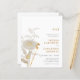 Orçamento Tudo em Uma Flores de Vintage e Convite de Casamento de Folhagem... Nosso clássico convite de casamento floral vintage "All in One" apresenta um arranjo branco antigo e dourado de flores e folhagem em um fundo branco nítido próximo ao seu texto de convite. A parte traseira do cartão contém todos os detalhes que você normalmente veria em cartas separadas dentro do pacote de casamento. Este convite de casamento, no estilo moderno, foi concebido para ser elegante e consciente do orçamento... para não falar em poupar tempo. Todo texto de exemplo pode ser facilmente revisado com suas próprias informações sobre o modelo de personalização.