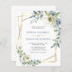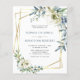 Orçamento Tudo em Um Convite para Casamento de Frame Geométrico Dourado Floral Eucalyptus Azul Dusty.. Nosso único barato "All in One" para o casamento floral apresenta os elegantes arranjos florais de aquarela e eucalipto em branco e tons de azul empoeirado em uma estrutura de ouro geométrica que faz fronteira com o seu texto de convite. A parte de trás do convite contém todos os detalhes que você normalmente veria em cartas separadas dentro do pacote de casamento. Este convite de casamento moderno, à frente e ao fundo, foi concebido para ser elegante e consciente do orçamento... para não mencionar a poupança de tempo. No verso há também um modelo de gráfico de código QR que você pode substituir por seu próprio código (ou excluir se você não planeja usar um... também - não se esqueça de excluir o texto que se refere às informações de código QR). Todo texto de exemplo pode ser facilmente revisado com suas próprias informações sobre o modelo de personalização.