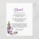 Convide seus amigos e entes queridos para o seu casamento com este convite de casamento floral roxo. Projetado para o casal econômico, este convite inclui as informações de recepção, os detalhes da solicitação de RSVP e quaisquer outras informações que você queira incluir no verso do convite, salvando o custo de compra de cartazes extras e artigos de papelaria.
