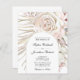 Orçamento Tudo em Um Boho Blush Rosa Rosa Rosa Seca Palma Folha Convite de Casamento... Nosso convite floral para o casamento floral "All in One", no barato, apresenta uma rosa rosa pincelada, no estilo boêmico, em um buquê de eucalipto e folhas de palma secas dispostas em volta de um quadro quente em forma de arco branco contendo seu texto de convite. A parte de trás do convite contém todos os detalhes que você normalmente veria em cartas separadas dentro do pacote de casamento. Este convite de casamento, no estilo moderno, foi concebido para ser elegante e consciente do orçamento... para não falar em poupar tempo. Na parte de trás, há também um modelo de gráfico de código QR que você pode substituir por seu próprio código (ou excluir se você não planeja usar um). Todo texto de exemplo pode ser facilmente revisado com suas próprias informações sobre o modelo de personalização.