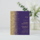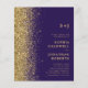 Orçamento Tudo em Um Dourado Monograma de Casamento Roxo com Detalhes no Fundo... Nosso barato "Tudo em Um" brilho dourado no convite de casamento roxo apresenta uma borda de ouro reluzente ao seu texto de convite e noiva e iniciais de monograma de noivos. A parte de trás do convite contém todos os DETAILS que você normalmente veria em cartões separados no pacote de casamento, incluindo tempo e local de recepção, opções de alojamento, site de casamento, RSVP e informações de registro de presentes. Este convite de casamento ao estilo moderno foi concebido para ser elegante e consciente do orçamento... para não mencionar a poupança de tempo. Todo texto de exemplo pode ser facilmente revisado com suas próprias informações sobre o modelo de personalização.