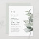 Orçamento tudo em um convite de casamento Eucalyptus com Aquarela Elegante... Nosso convite de casamento botânico "All in One" no orçamento apresenta uma elegante ramificação de eucalipto com aquarela em tons verdes poeirentos, definindo o texto do convite ao seu lado. A luz verde empoeirada do convite contém todos os detalhes que você normalmente veria em cartas separadas dentro do pacote de casamento. Este convite de casamento, no estilo moderno, foi concebido para ser elegante e consciente do orçamento... para não falar em poupar tempo. Na parte de trás, há também um modelo de gráfico de código QR que você pode substituir por seu próprio código (ou excluir se você não planeja usar um). Todo texto de exemplo pode ser facilmente revisado com suas próprias informações sobre o modelo de personalização. NOTE: O cartão "Orçamento" não é exatamente o mesmo que os convites tradicionais de cartão simples. Nossos cartões de orçamento são de 4,5 x 5,6 polegadas feitos de papel semirbrilhante de 110 lb comparado com os tradicionais cartões planos de convite de casamento de 5 x 7 polegadas em papel mate de 120 lb. Além disso, os cartões de orçamento não vêm automaticamente com envelopes, assim como os cartões de convite tradicionais, mas você pode comprá-los na mesma página na saída, se desejar. Tudo isso em um design de orçamento também está disponível em um tradicional cartão de convite de casamento 5x7.