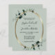 Orçamento Tudo em Um Convite de Casamento Metálico Eucalyptus Dourado... Nosso convite de casamento botânico luxo "Tudo em Um" apresenta uma estrutura oval metálica dourada embelezada com folhas de eucalipto abarrotadas de esmeraldas sobre um fundo verde-claro. A parte traseira da luz do cartão contém todos os detalhes que você normalmente veria em cartas separadas no pacote de casamento. Este convite de casamento ao estilo moderno foi concebido para ser elegante e consciente do orçamento... para não mencionar a poupança de tempo. Na parte de trás, há também um modelo de gráfico de código QR que você pode substituir por seu próprio código (ou excluir se você não planeja usar um). Todo texto de exemplo pode ser facilmente revisado com suas próprias informações sobre o modelo de personalização. NOTA: o papel de cartão "Orçamento" não é o mesmo que os convites de cartão simples tradicionais. Nossos cartões de orçamento são de 4,5 x 5,6 polegadas feitos de papel semirbrilhante de 110 lb comparado com os tradicionais cartões planos de convite de casamento de 5 x 7 polegadas em papel mate de 120 lb. Além disso, os cartões de orçamento não vêm automaticamente com envelopes, assim como os cartões de convite tradicionais, mas você pode comprá-los na mesma página na saída, se desejar. Tudo isso em um design também está disponível em um tradicional cartão de convite de casamento 5x7.