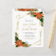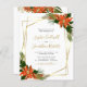Orçamento Tudo em Uma Poinsettia Moderna Frame Dourada Convite para Casamento no inverno Floral.. Nosso convite para casamento no inverno floral "All in One" no barato apresenta um quadro geométrico dourado embelezado com buquês de poinsettia vermelha, citros e folhagem verde esmeralda nos arredores do seu convite de casamento personalizado. A parte de trás do convite contém todos os detalhes que você normalmente veria em cartas separadas no pacote de casamento. Este convite de casamento ao estilo moderno foi concebido para ser elegante e consciente do orçamento... para não mencionar a poupança de tempo. Na parte de trás, há também um modelo de gráfico de código QR que você pode substituir por seu próprio código (ou excluir se você não planeja usar um). Todo texto de exemplo pode ser facilmente revisado com suas próprias informações sobre o modelo de personalização. NOTA: Os cartões de orçamento não vêm automaticamente com envelopes, assim como os convites tradicionais, mas você pode comprá-los na mesma página na saída, se desejar. Tudo isso em um design casamento no inverno também está disponível em um cartão de convite de casamento tradicional 5x7.