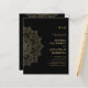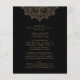 Orçamento Tudo em um Dourado Convite para Casamento Negro Elegante Mandala Monograma com Detalhes no Fundo... Nossa elegante barato "All in One" mandala de ouro no convite de casamento preto contém uma intrincada mandala de ouro chamando a atenção para seu texto de convite e para suas iniciais de noiva e monograma. A parte de trás do convite contém todos os DETAILS que você normalmente veria em cartões separados no pacote de casamento, incluindo tempo e local de recepção, opções de alojamento, site de casamento, RSVP e informações de registro de presentes. Este convite de casamento ao estilo moderno foi concebido para ser elegante e consciente do orçamento... para não mencionar a poupança de tempo. Todo texto de exemplo pode ser facilmente revisado com suas próprias informações sobre o modelo de personalização.