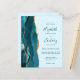 A borda esquerda deste elegante convite de casamento moderno apresenta uma borda de ágata em aquarela turquesa aparada com brilho dourado falso. O texto personalizável combina fontes manuscritas, cobre e itálico em turquesa escuro sobre um fundo turquesa pálido. O verso fornece espaço para detalhes do casamento em um fundo turquesa pálido sólido, juntamente com um código QR que os convidados podem escanear para visitar seu site e responder.