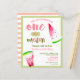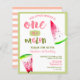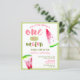 Orçamento Um em um primeiro convite de aniversário de melão para sua garotinha, com fatias de melancia de aquarela. O esquema de cores é principalmente rosa e verde.