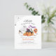 Cartões de modelo de convite para chás de fraldas do Dia das Bruxas. A frente deste orçamento e um design exclusivo apresenta uma teia de aranha no canto superior esquerdo. O texto diz "um pouco de bu está quase vencido!" com uma ilustração de amigos loucos pintados à mão. Um adorável gato preto está se debruçando sobre uma abóbora com um chapéu roxo e varinha mágica, há dois fantasmas, um chapéu feiticeiro, um morcego roxo, um balão laranja, e doces! Abaixo, seu nome e detalhes do evento de chá de fraldas aparecem na tipografia moderna com o nome da futura mãe em laranja, e a data de chá em roxo. Estas cartas invertem para um padrão colorido de confete branco e laranja contra um fundo preto. Uma design neutra em termos de gênero, perfeita para qualquer rapaz ou rapariga que se esperava no outono ou no início do inverno. Clique em "Personalizar" para alterar o texto. Como parte da seleção orçamentária no Zazzle, esta folha não é um tamanho de convite padrão ou qualidade de papel. Se quiser que este design num cartão de convite o encontre na nossa loja ou utilize o Zazzle Make Machine para o transferir para o produto da sua escolha. Sinta-se à vontade para me contactar com quaisquer perguntas relacionadas a design!