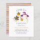 Um pouco de bu está quase a chegar! Celebrar a chegada com estes convites de chuveiros de bebês com o orçamento e os adoráveis temas do Dia das Bruxas! Este design bonitinho apresenta um pequeno fantasma vestindo o chapéu de uma bruxa, carregando um cesto de truques ou doces e segurando um pedaço de milho doce. Ao lado do fantasma, há uma abóbora sorridente e um morcego amigável. O morcego está decorando com o bunting da bandeira! Os três amigos estão cercados por pequenas estrelas e faíscas. O texto do evento é exibido abaixo, com os nomes dos pais em laranja e as informações do registro em roxo. Este modelo tem um texto de chá de casal, mas pode ser facilmente alterado para apresentar apenas um nome. Cartões invertidos a um padrão de listras pintadas manualmente no mesmo esquema de cores assustador de laranja, roxo e cinzas. Para começar a alterar nomes e detalhes do evento, clique em "Personalizar este modelo" e edite o texto nas caixas modelo. Para acessar as ferramentas de edição mais avançadas, role para baixo até "Clique para personalizar mais". Assim que estiver na ferramenta design do Zazzle, você poderá editar fontes, posicionamento, cor, dimensionamento e muito mais! Como parte da seleção orçamentária no Zazzle, esta folha não é um tamanho de convite padrão ou qualidade de papel. Se quiser que este design num cartão de convite o encontre na nossa loja ou utilize o Zazzle Make Machine para o transferir para o produto da sua escolha. Basta notar que não posso modificar uma ordem existente - se você quiser trabalhar juntos em algo, deixe-me uma mensagem e eu terei todo o prazer em ajudar! Sinta-se à vontade para procurar mais designs na nossa loja.