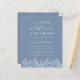 Celebrar a chegada de um novo pacote de alegria com um belo e girassol no caminho... um chá de fraldas prezado. Junte-se a nós por uma tarde cheia de amor e felicidade enquanto honramos os futuros pais. O convite apresenta um incrível fundo azul empoeirado, acentuado por uma série de flores silvestres vibrantes.