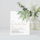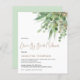 Um alternativo de 4,5 pol x 5,6 pol com preço inferior. Disponível em um STOCK DE CARTÃO SEMI-GLOSS 110 lb, que é a opção padrão (mais espesso para convites), OU um STOCK de PAPEL THINNER FINISH 80 lb FINISH (ideal para gabinetes). Os envelopes são um extra opcional e são ligeiramente maiores que o tamanho da placa. . Quando não se pode celebrar da maneira habitual, um "drive By Chá" é uma forma excelente de todos mostrarem seu amor à noiva. Esta design tem um florescimento de folhas verdes e douradas de eucalipto decorando o canto superior direito e a tipografia está no lado esquerdo. Chá de panela é definido em um script elegante, e o resto do texto que você pode personalizar facilmente. Você também pode alterar a cor do plano de fundo verde de coordenação no verso, se necessário.