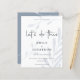 Um valor para o alternativo do ORÇAMENTO em tamanho menor de 4,5 x 5,6" de semirbrilho de 110 lbs, que é de espessura semelhante a um cartão postal (no entanto, não é adequado para uso como cartão postal). POR FAVOR, OBSERVE QUE HÁ UM convite por folha. Vamos Fazer Esta Folha Azul Derramado Salvar A Data. Um fundo de folhagem azul empoeirada está em cada lado e o conjunto informal de Vamos de roteiro azul escuro Faça Isto para convidar seus convidados a salvar a data de seu casamento. O resto do texto que você pode personalizar facilmente com seus detalhes. Um plano de fundo azul empoeirado está no verso.Você também pode mudar as cores da fonte e da folha, assim como as cores de fundo na frente e no verso, se quiser se adequar melhor ao tema da cor do casamento, através da opção personalizar mais. Se precisar de ajuda, por favor, não hesite em me mandar uma mensagem.