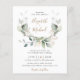 Um convite para casamento, amigável e econômico, com aquarelas de verde-sábio eucalipto verde, folhas loucas com sotaques dourados, tipografia moderna de cinza mole e seus nomes em um roteiro de ouro na moda. No verso, insira o endereço do seu site de casamento para criar um código QR para seus convidados digitalizarem para RSVP on-line e obter detalhes adicionais de casamento, como instruções e acomodações.