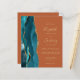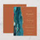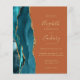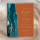 A borda esquerda deste convite de casamento moderno e elegante apresenta uma borda de ágata em aquarela turquesa aparada com brilho dourado falso. O texto personalizável combina escrita à mão em dourado, fontes copperplate e itálico em um fundo laranja queimado. O verso é laranja queimado sólido. NOTA: Os envelopes não estão incluídos automaticamente com esses convites econômicos, então lembre-se de escolher a opção "envelopes brancos"!