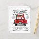Este cartão de férias rústico personalizado apresenta um caminhão vermelho vintage com uma árvore de Natal e três gnomos vestidos de justiça vermelha e branca no fundo. Diz "Feliz Natal e Feliz ano novo!" Personalize com seu nome de família e ano na parte de trás do caminhão. A parte traseira do cartão tem uma saudação que você pode deixar como está ou personalizar juntamente com sua assinatura. Feliz Férias!